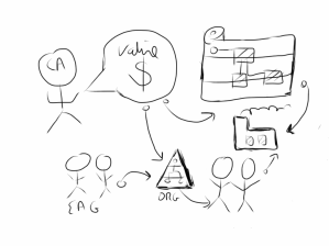 Den måde jeg anskuer problemstillingen om værdiskabelse på er i udgangspunktet at der findes et behov for viden der er blevet afprøvet og valideret på en måde der gør det muligt for organisationens beslutningstagere at træffe beslutninger baseret på viden der er blevet afprøvet og verificeret. Det kræver at enterprise arkitektur gruppen er i stand til at levere en række mindre resultater der tilsammen bidrager til at beslutningsplatformen. Når jeg omtaler mindre resultater, så tænker jeg på løsninger der er relativt hurtige at udvikle og bidrager med dele der kan være med til at skabe et overblik. Med tiden vil en beslutningsplatform være tilgængelig.